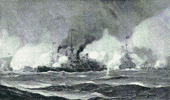 ![]() The Oregon after her chase of Cristobal Colon in The Story of Mexico |