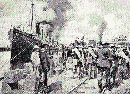 ![]() Soldiers going on Transports at Tampa in The Story of Mexico |
