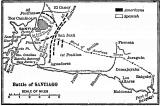 Fought June 13, 1899 between a force of 3000 Americans, led by Major Lawton, and a force of 5000 Filipinos, led by Pio del Pilar. The native forces were entrenched in elaborate breastworks, but in spite of a valiant defense did not have the firepower needed to resist the Americans superior firepower. The Americans suffered 15 dead and 60 wounded, while the Filipinos suffered over 500 casualties. | ||