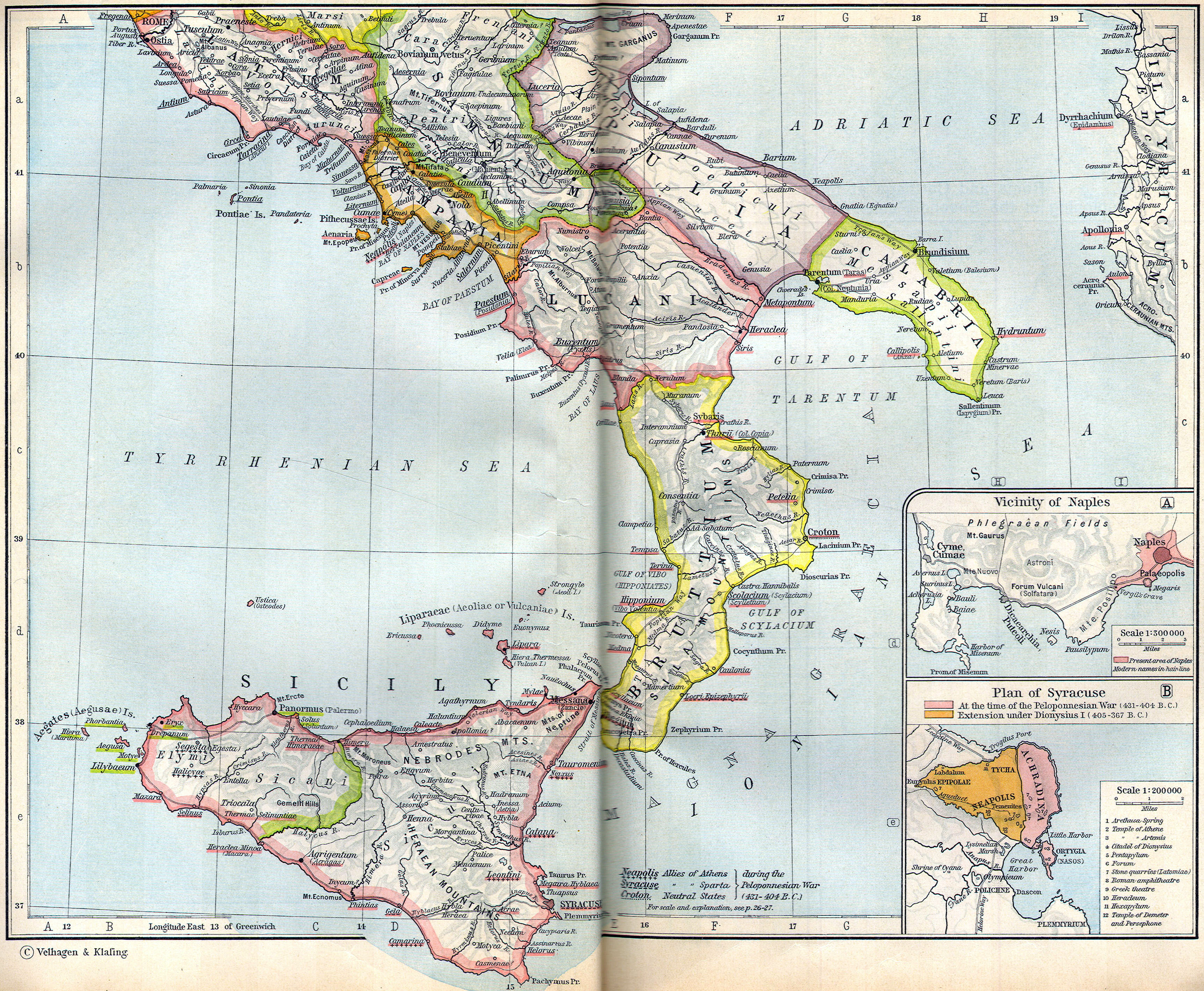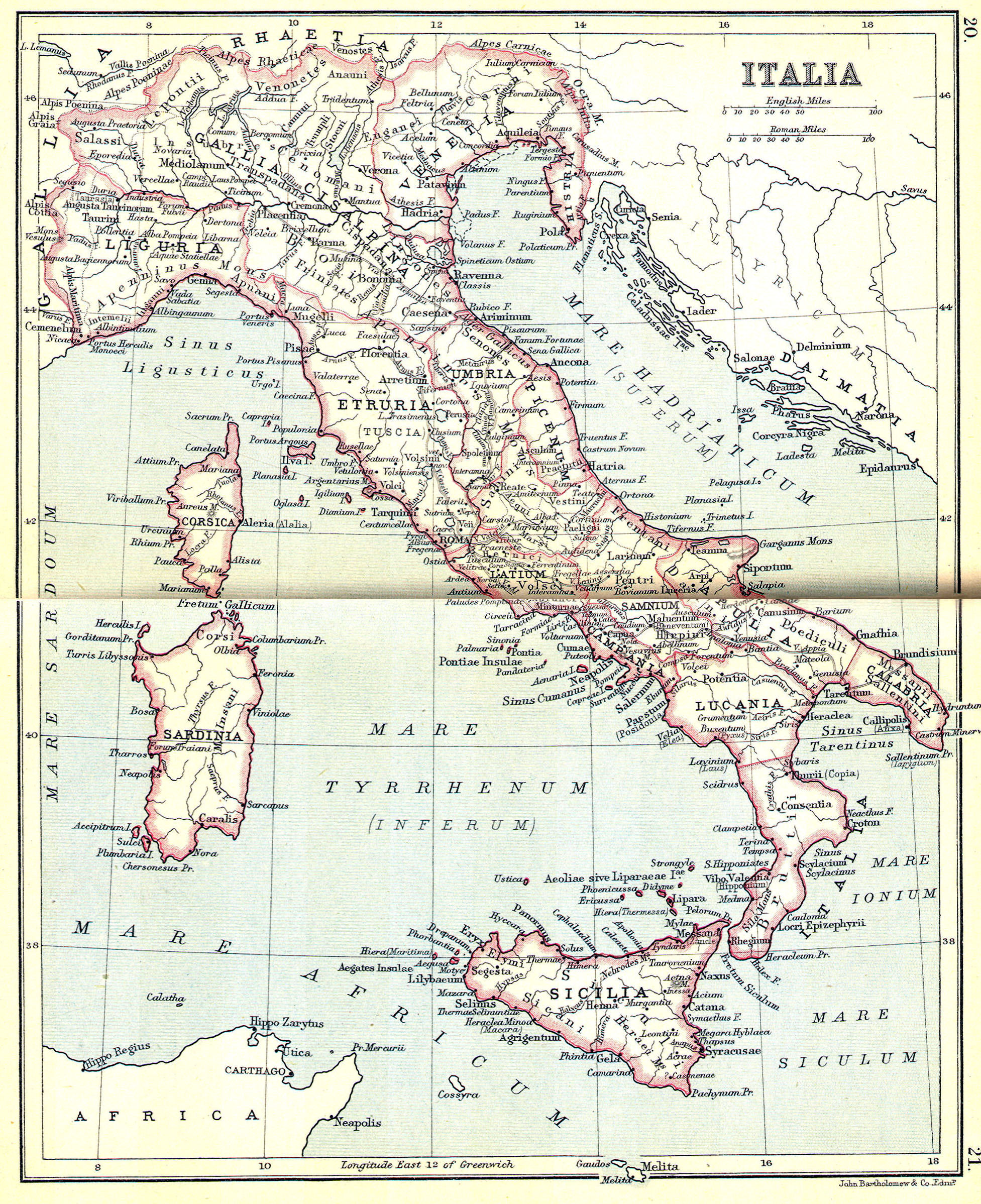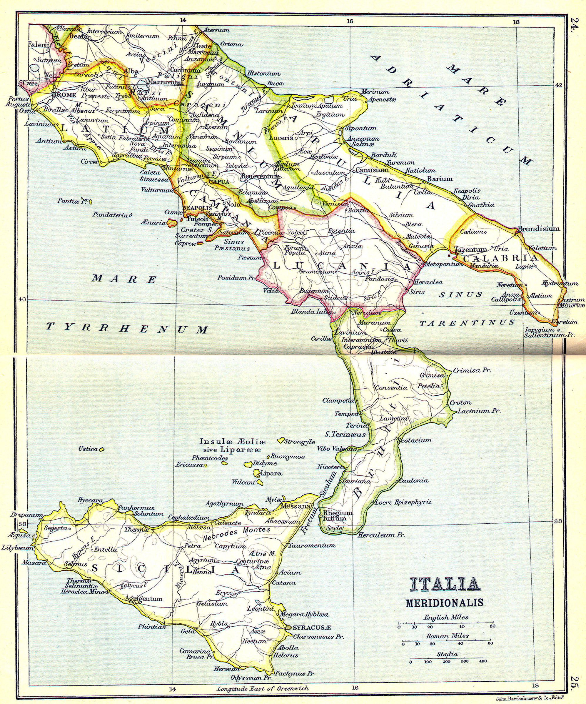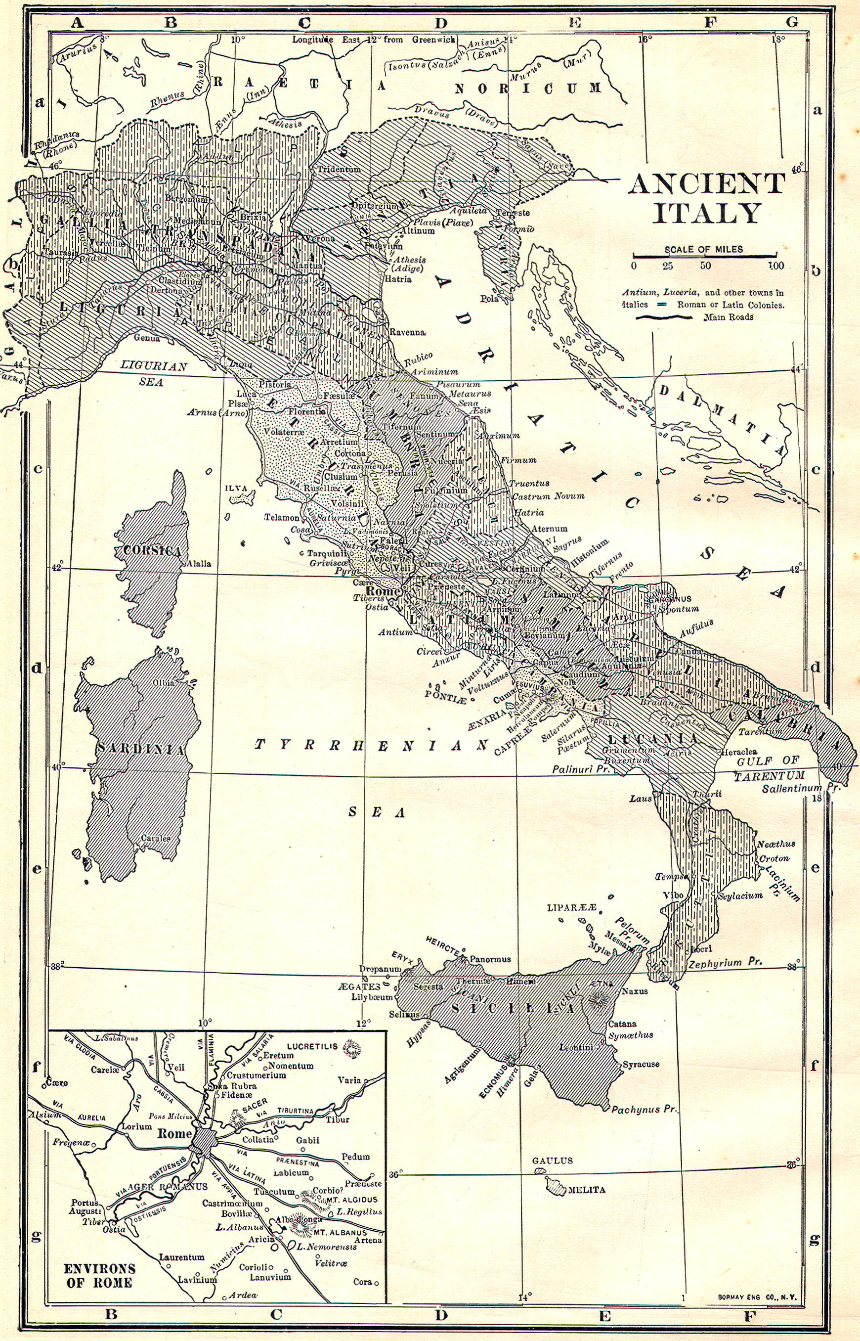 Cities: Pompeii, Capua, Naples, Syracuse, Ravenna, Tarentum, Genoa, Venice, Pavia, Milan, Bologna, Florence