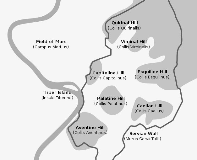 Hills: Aventine, Palatine, Capitoline, Caelian, Esquiline, Viminal, Quirinal