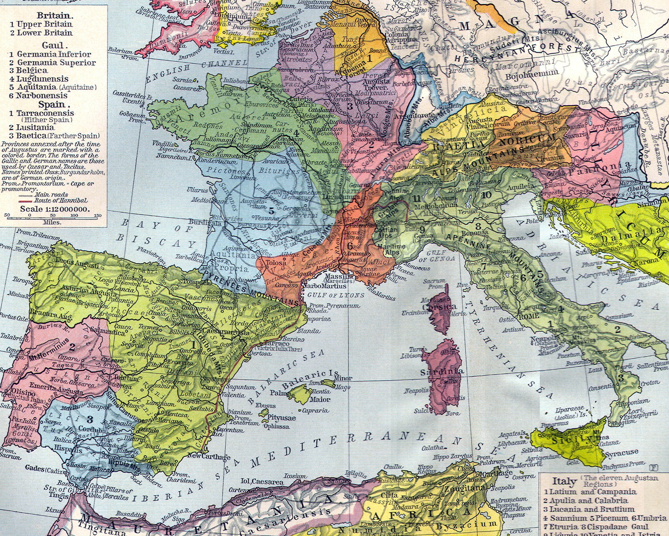 Regions: Gaul (Gallia), Hispania, Numidia, Britannia